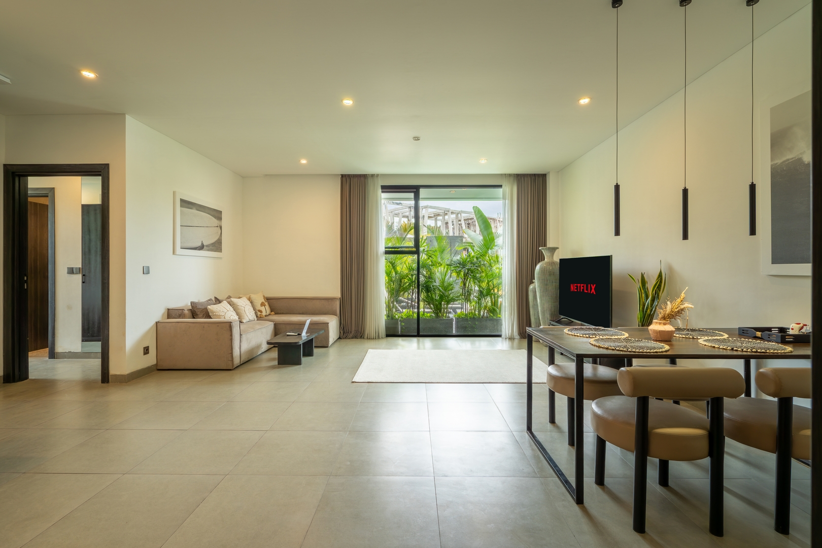 Welcome to the Suite at Sunny Bloom, a spacious and welcoming stay designed for social travelers and small groups. With cozy interiors and easy access to the shared pool, cowork lounge, and yoga area, the suite offers a comfortable and connected base close to beaches, cafés, and Canggu’s coastal lifestyle. • Steps to La Laguna, Folie & Nourish • 750 m to Batu Belig Beach for surfing and sunsets • Minutes to Café del Mar, Finns & Atlas High speed Wi-Fi and 24/7 guest support for seamless stay.