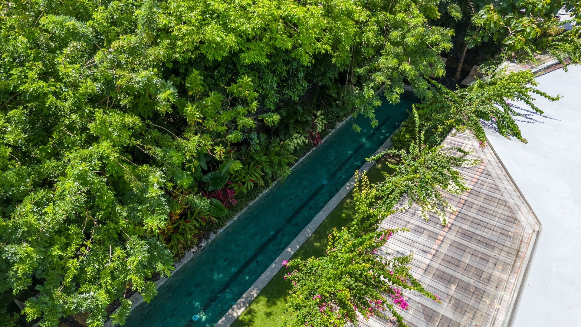 • Long private pool surrounded by tropical scenery — perfect for pre-sunset dips