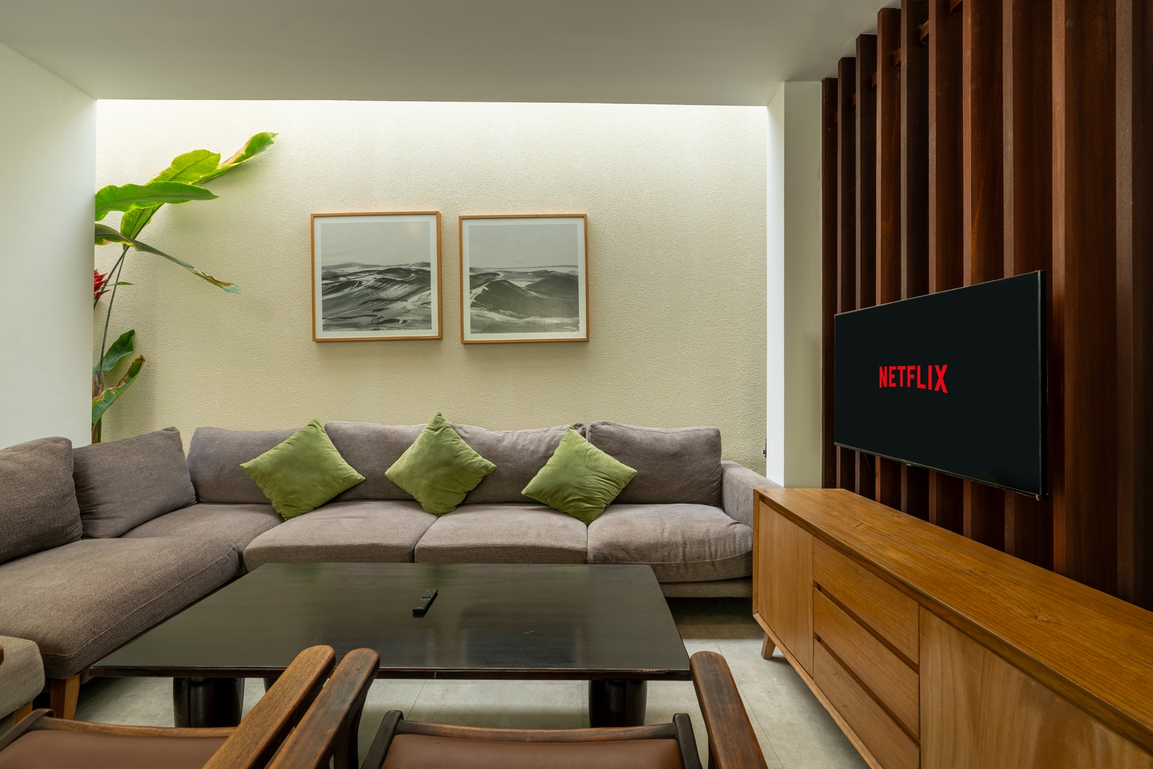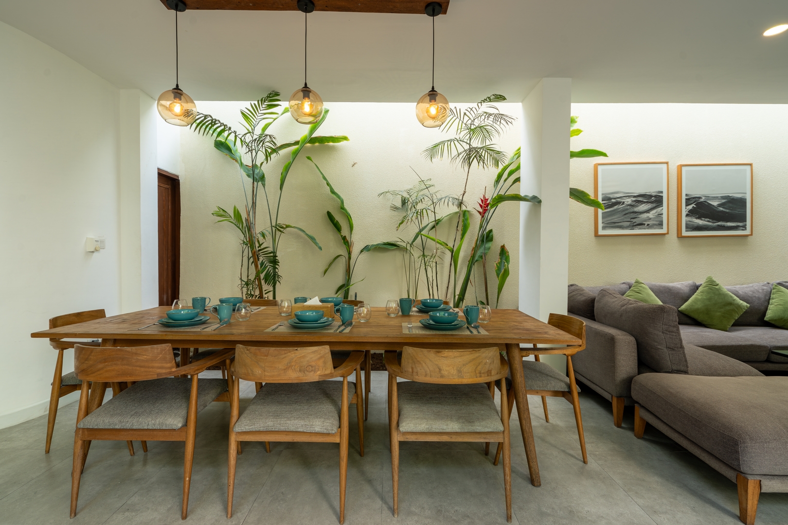 Green Moon Villa 2 blends refined contemporary design with warm tropical details, creating bright and expansive living areas suited for families, groups, and remote-working guests. Natural light streams through wide windows, enhancing the villa’s calm tones and ensuring a smooth indoor–outdoor connection centered around the private pool.